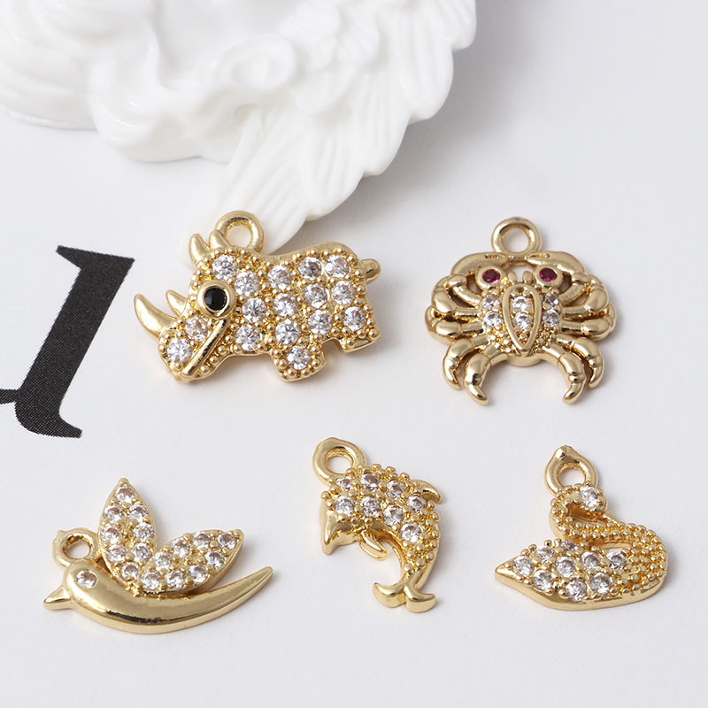 Diy耳飾りの銅メッキの本物の金はジルコンのカニの白鳥のサイのイヤリングのイヤリングのネックレスの材料のブレスレットをまねます。