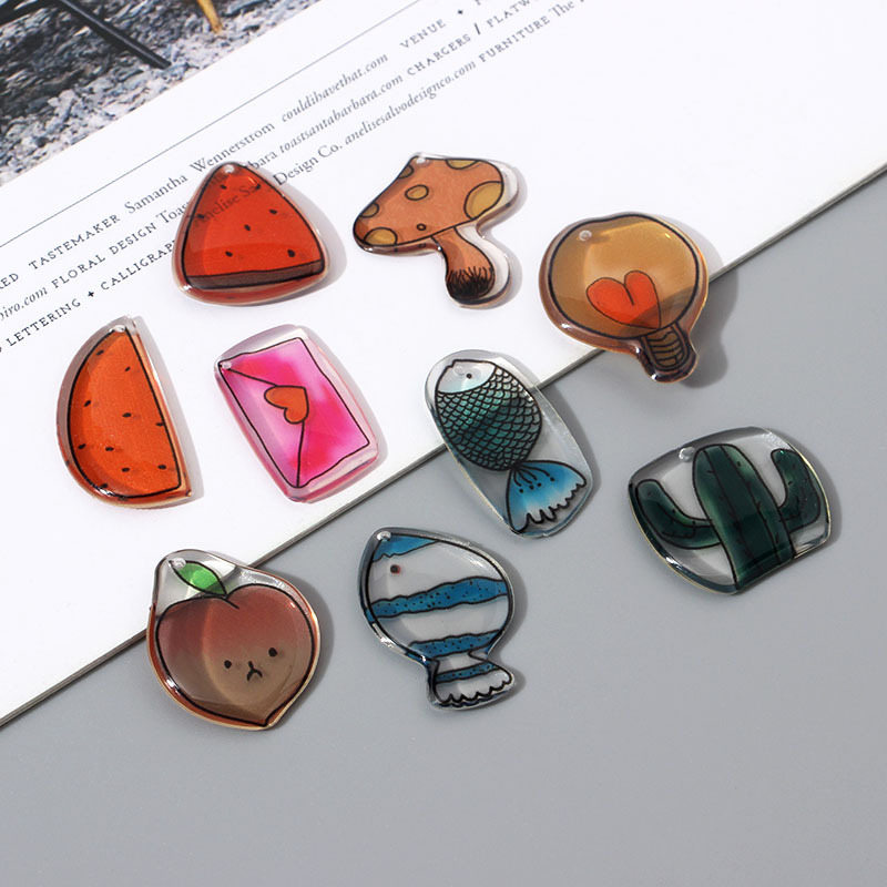 真似の手描きの熱収縮シートのゴムのラブレターの桃のキノコのペンダントdiyの手作りのイヤリングのアクセサリーのネックレスの部品の材料