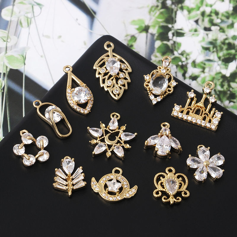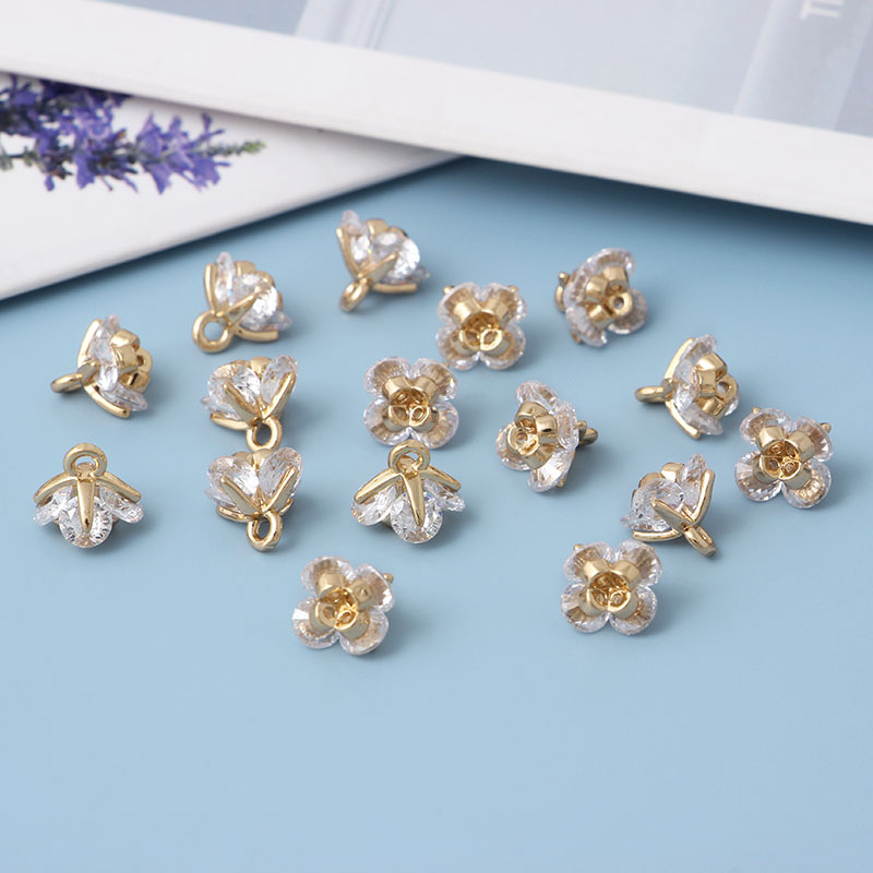 銅メッキ真金保色モザイクジルコン四弁花形ペンダント手作り耳飾りネックレスdiy材料部品