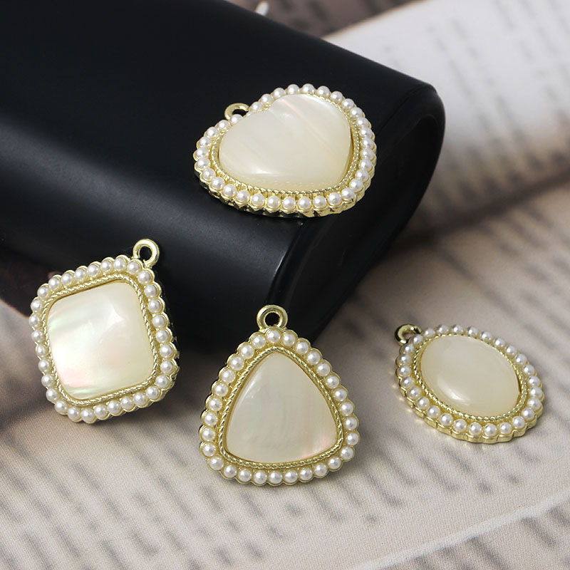 レトロ宮廷風合金樹脂真珠愛楕円三角形diy手作りアクセサリーイヤリング部品材料