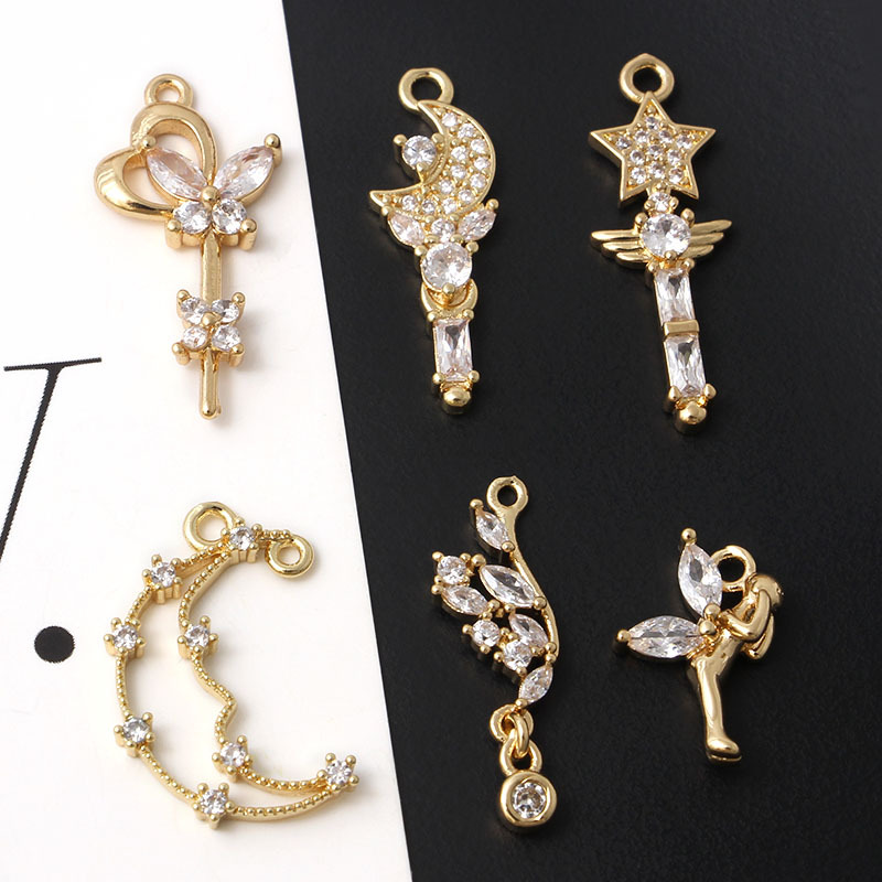 銅メッキの真金の象眼はジルコンのアンドロメダの月の昆虫の精霊の小さいペンダントのdiyのネックレスの耳の装飾品の部品をまねます。