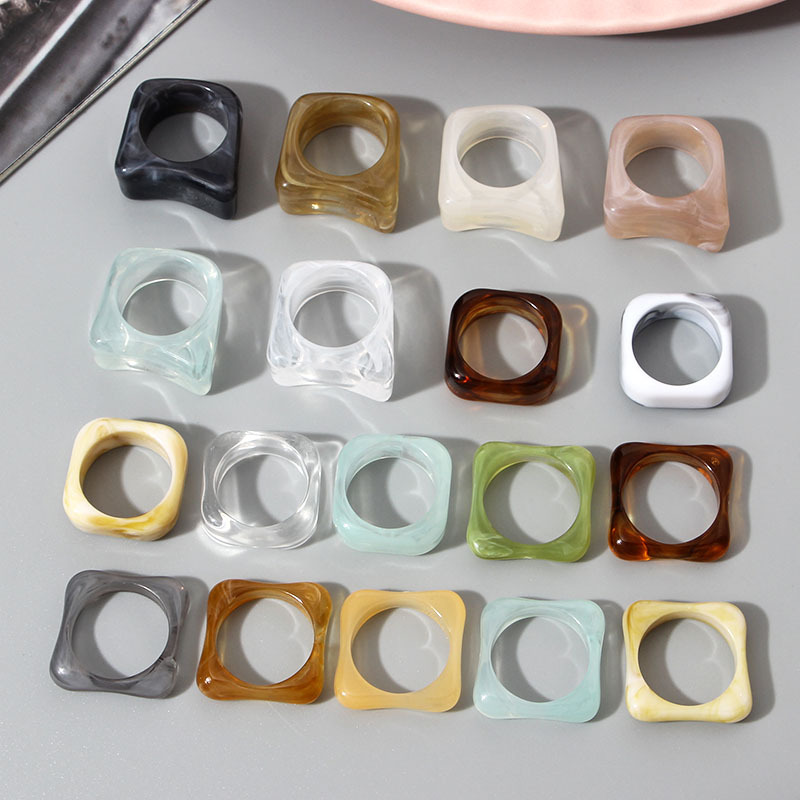 韓国の大衆が誇張して凹んでいます。グラデーション透明カラー樹脂指輪の人差し指リングです。