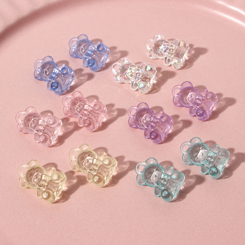 Ins日系糖ゼリーカラーかわいい純色熊樹脂diy手作りアクセサリーイヤリングピアス部品材料