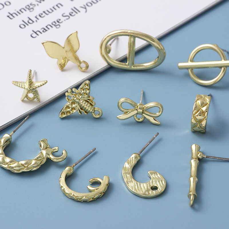 銅メッキ18k真金仏手イチョウの葉の羽の蝶結びの穴の四つ葉の草のイヤリングの部品diy耳飾りの材料