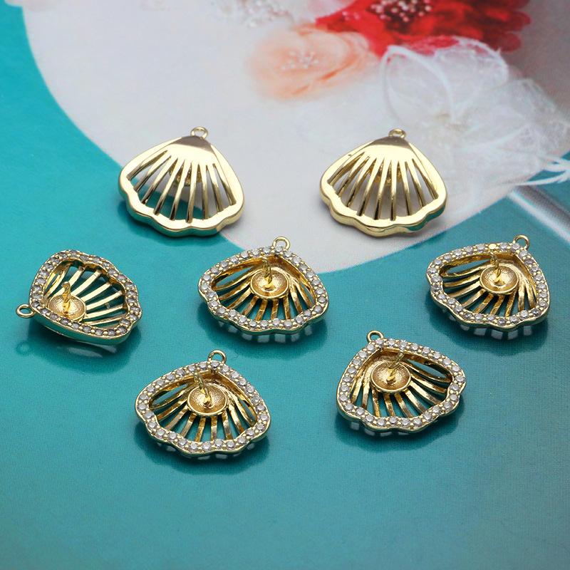 18k銅の包みの金はジルコンを入れて空の托の貝殻の項のペンダントの材料を持っています。