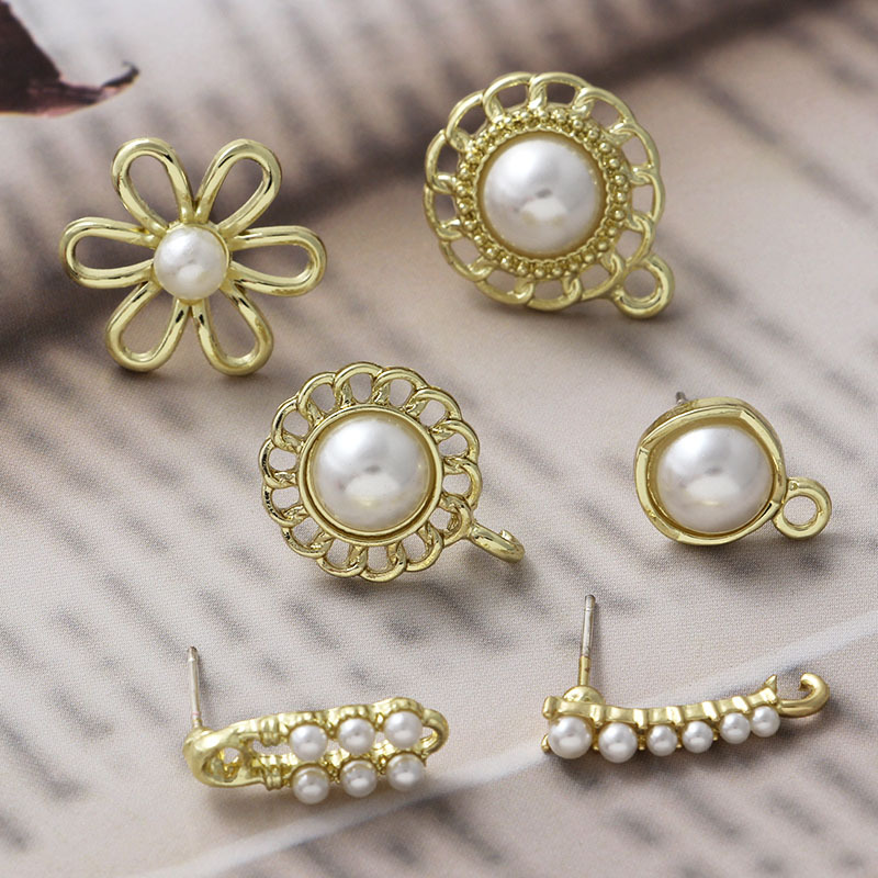 バロックレトロミニ模造パールラウンドベルト吊合金ピアスdiy手作りアクセサリーイヤリングアクセサリー材料