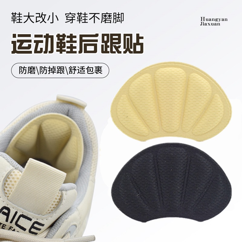 スポーツシューズのかかとに男性の女性靴を貼って、かかとを磨かないようにします。