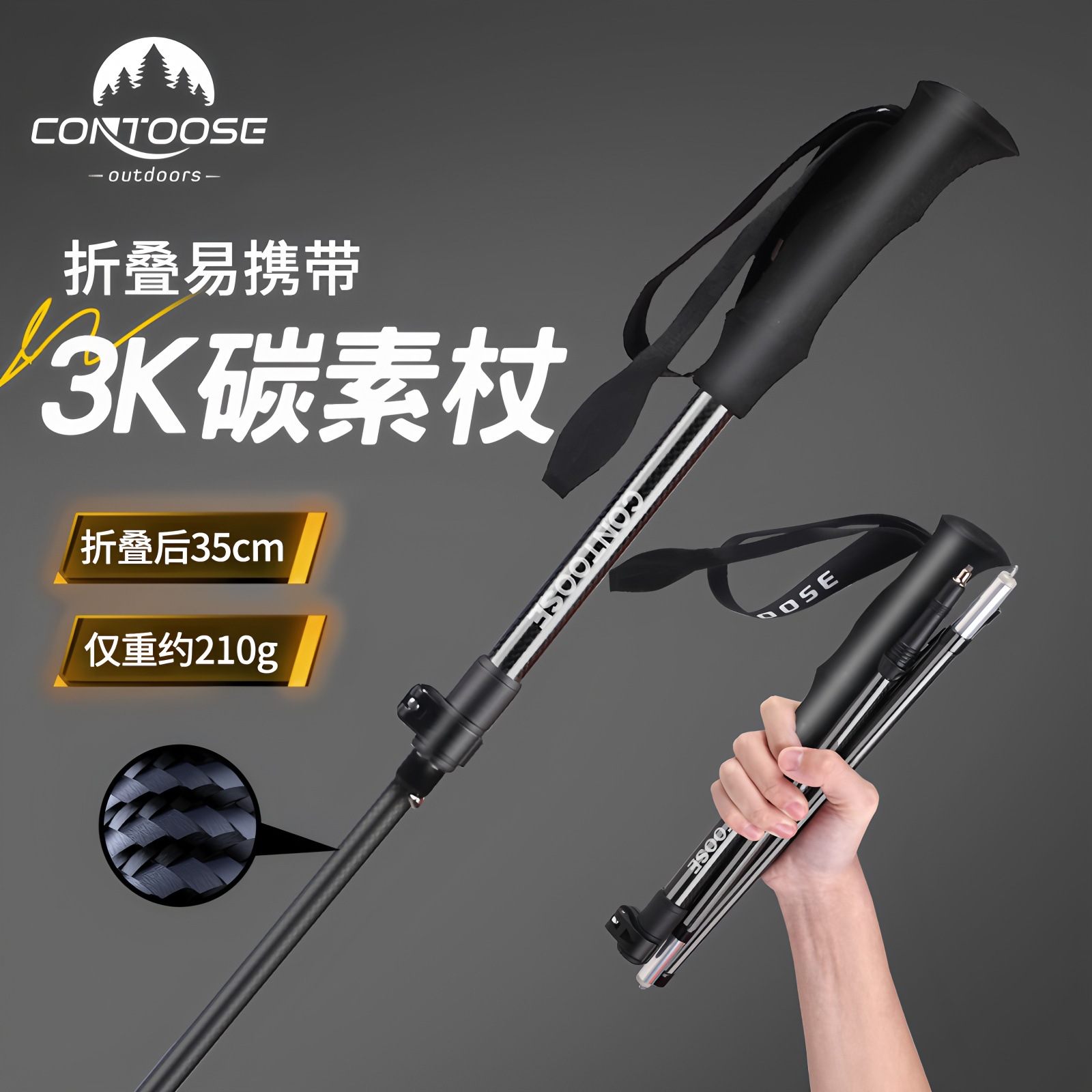 3K カーボンファイバートレッキングポール、超軽量ポータブル杖、屋外折りたたみ滑り止め杖、多機能トレッキングポール