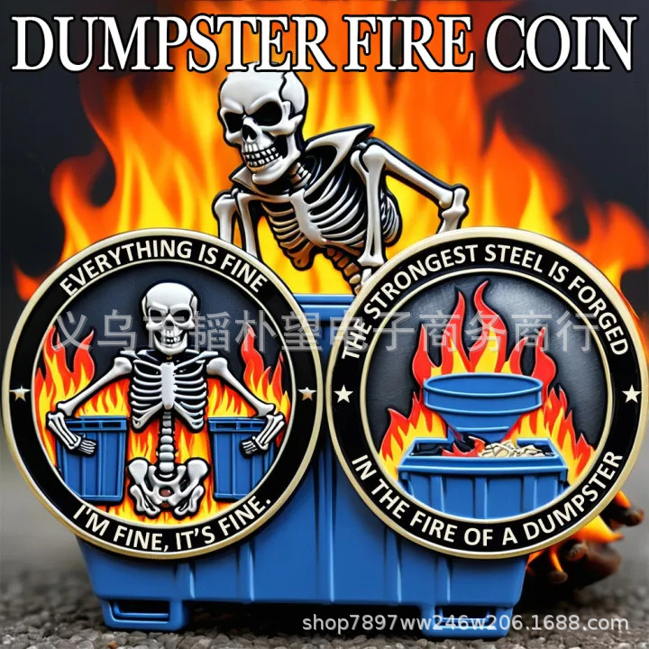 国境を越えた人気のスケルトン メカニカル ダンプスター ファイア ファイア チャレンジ コイン 金属亜鉛合金