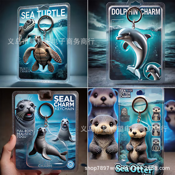 越境新製品 海洋動物キーホルダー 海洋動物キーホルダー 樹脂工芸品