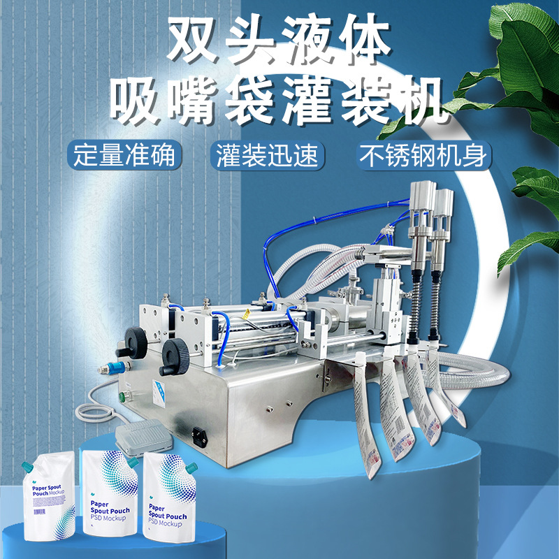 自立口袋半自動液体洗濯液気動分機豆乳牛乳双頭定量充填機