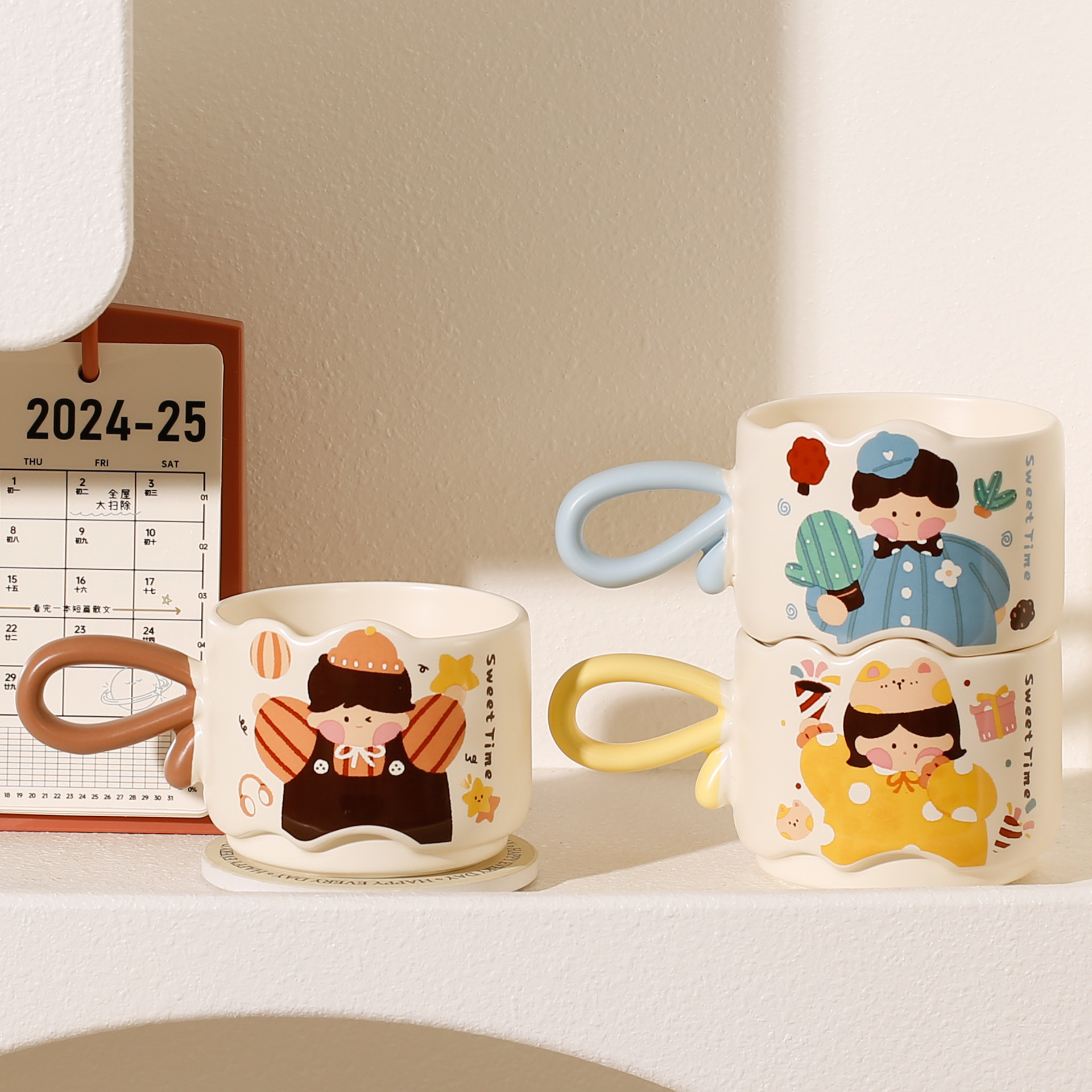 カップルセラミックミルク朝食コーヒーカップ高颜値漫画ins风お土产かわいいレリーフセラミックカップ