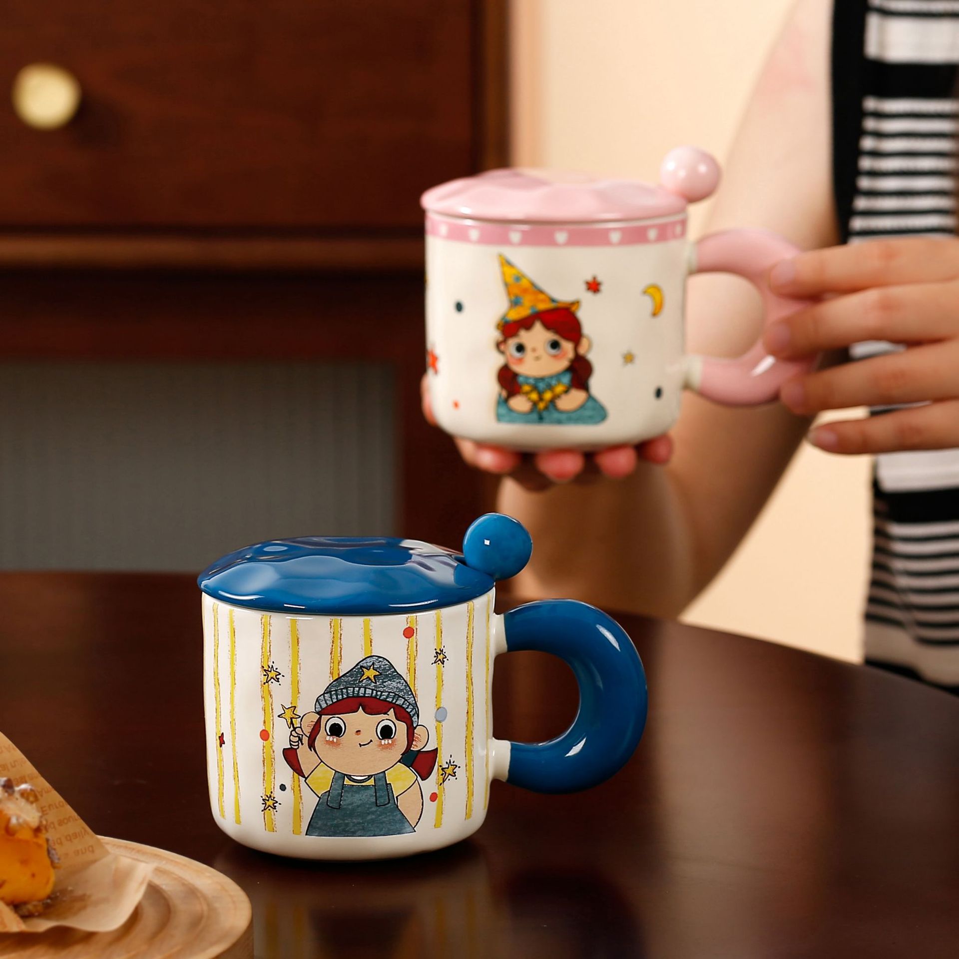 漫画動物セラミックマグカップ少女心カップは、親友の誕生日プレゼントカップオフィス用朝食カップをプレゼントします