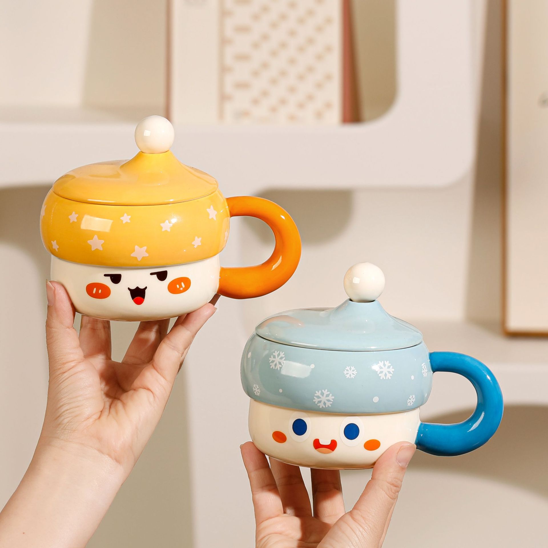 創意的で可愛いアニメキノコ陶磁器カップ蓋付きマグカップお土産家庭用親友プレゼント誕生日プレゼント