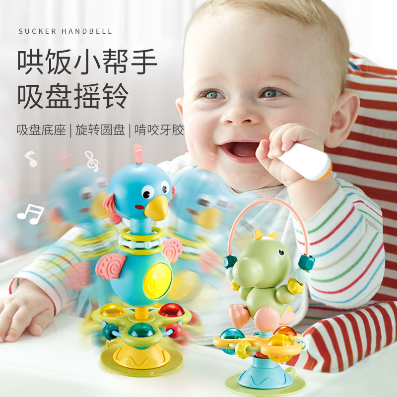 宝宝吃饭餐椅吸盘玩具喂饭神器婴儿摇铃儿童手摇铃转转乐6-12个月