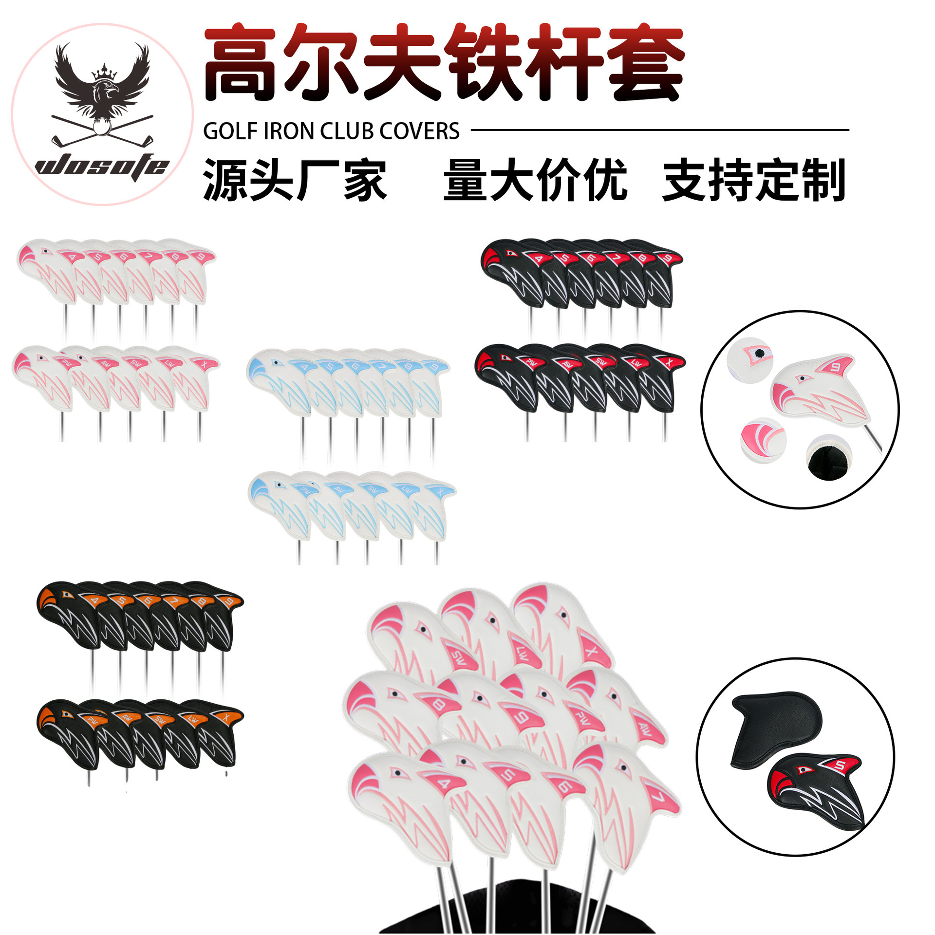源工場 ゴルフヘッドカバー イーグル柄 越境人気 ゴルフアイアン用キャップカバー
