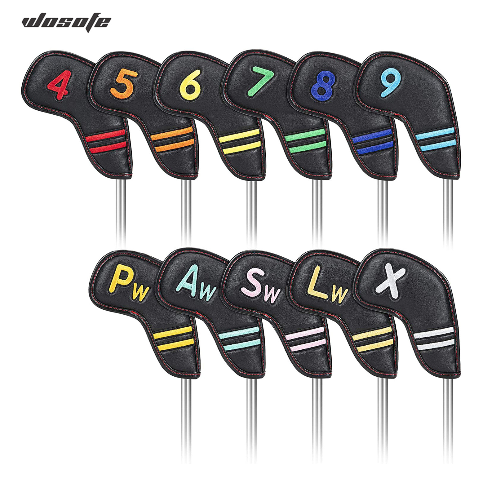 新品ゴルフアイアンカバーpuクラブ延長版保護カバーマグネット閉鎖バックルキャップカバー11個/セット