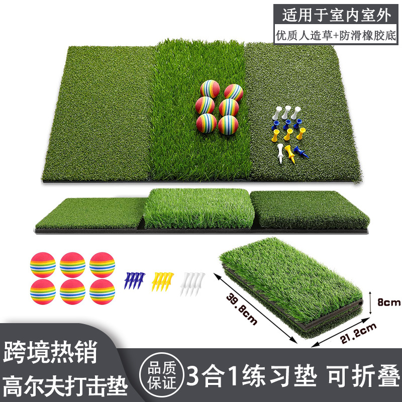 ゴルフの打撃のマットは厚いスイングの練習の草のマットのゴルフの用品の3合1の長さの草の練習の室内外を厚くします。
