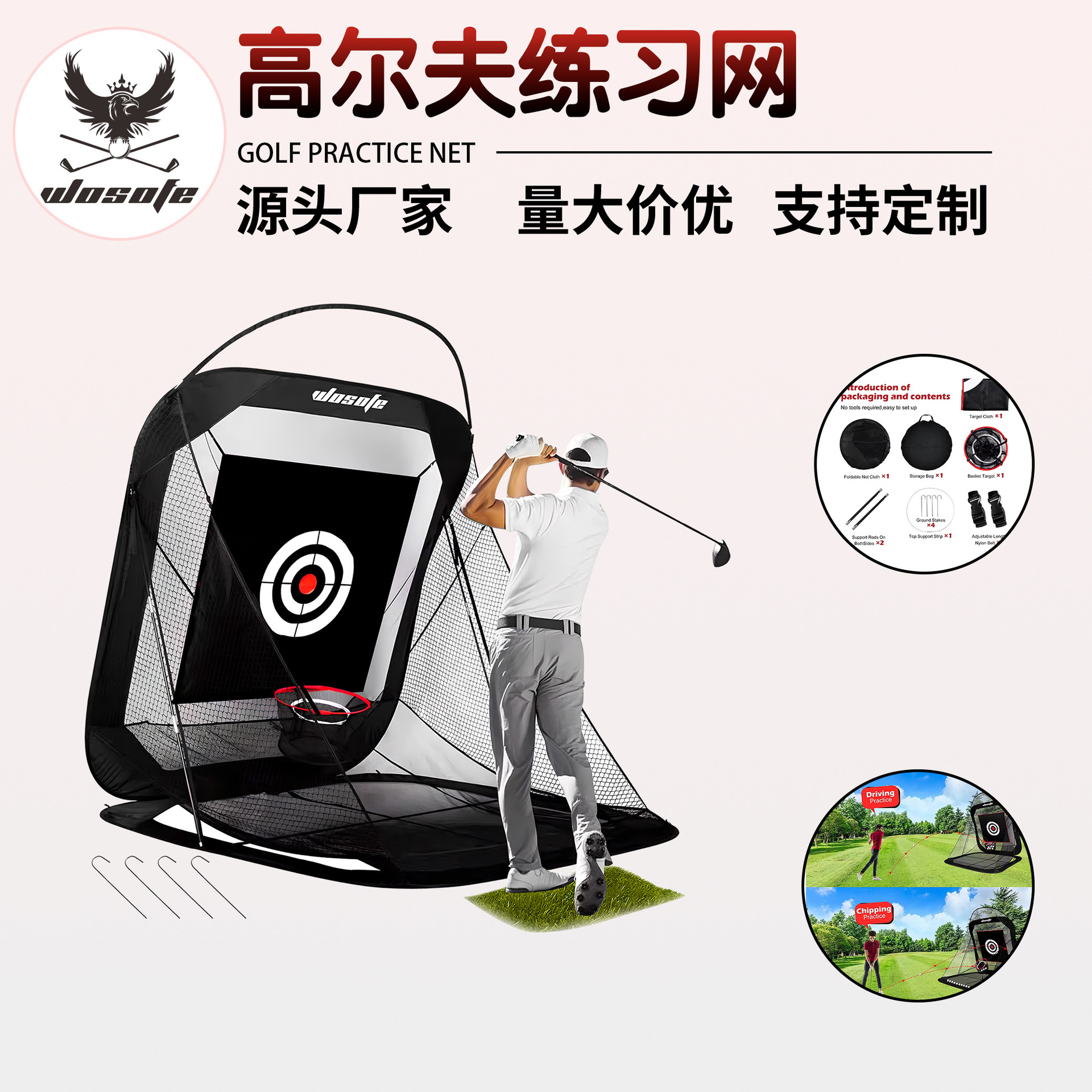 メーカー直販 ゴルフスイング・チップショット 自動返球機能付き 屋内外兼用 ゴルフ練習ネット 高品質