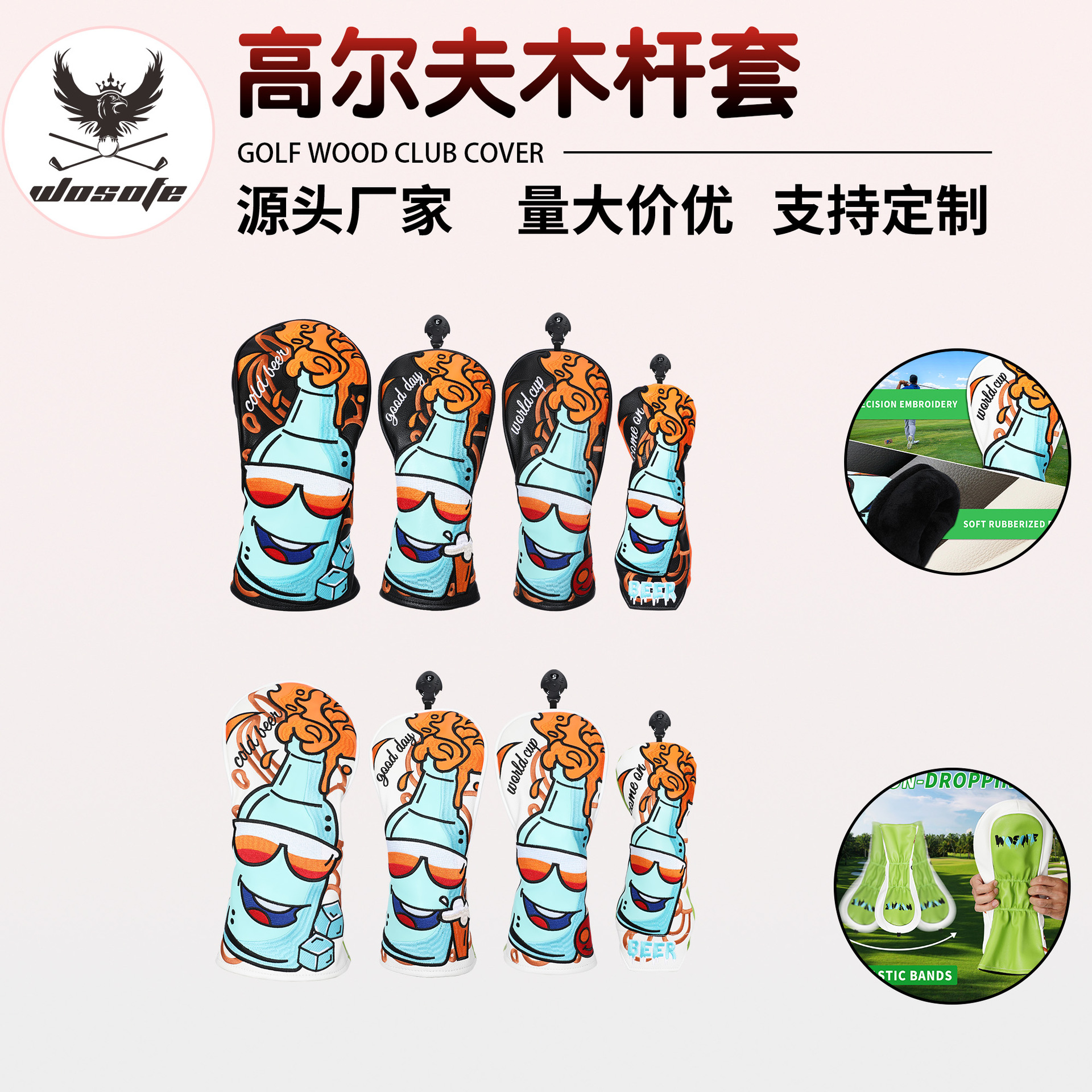 ソースファクトリー越境ホットセールPUビールボトル柄ゴルフヘッドカバーゴルフウッドクラブキャップカバー