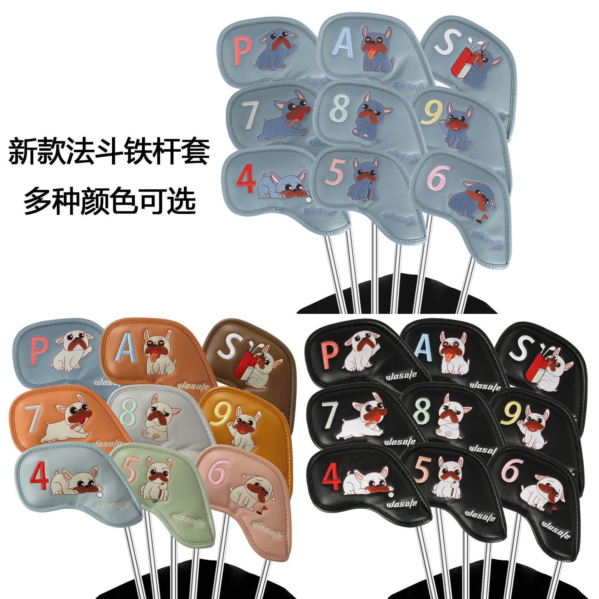 新しいゴルフアイアンカバー GOLF クラブカバー保護キャップカバーフレンチブルドッグ漫画パターン 3 色オプション
