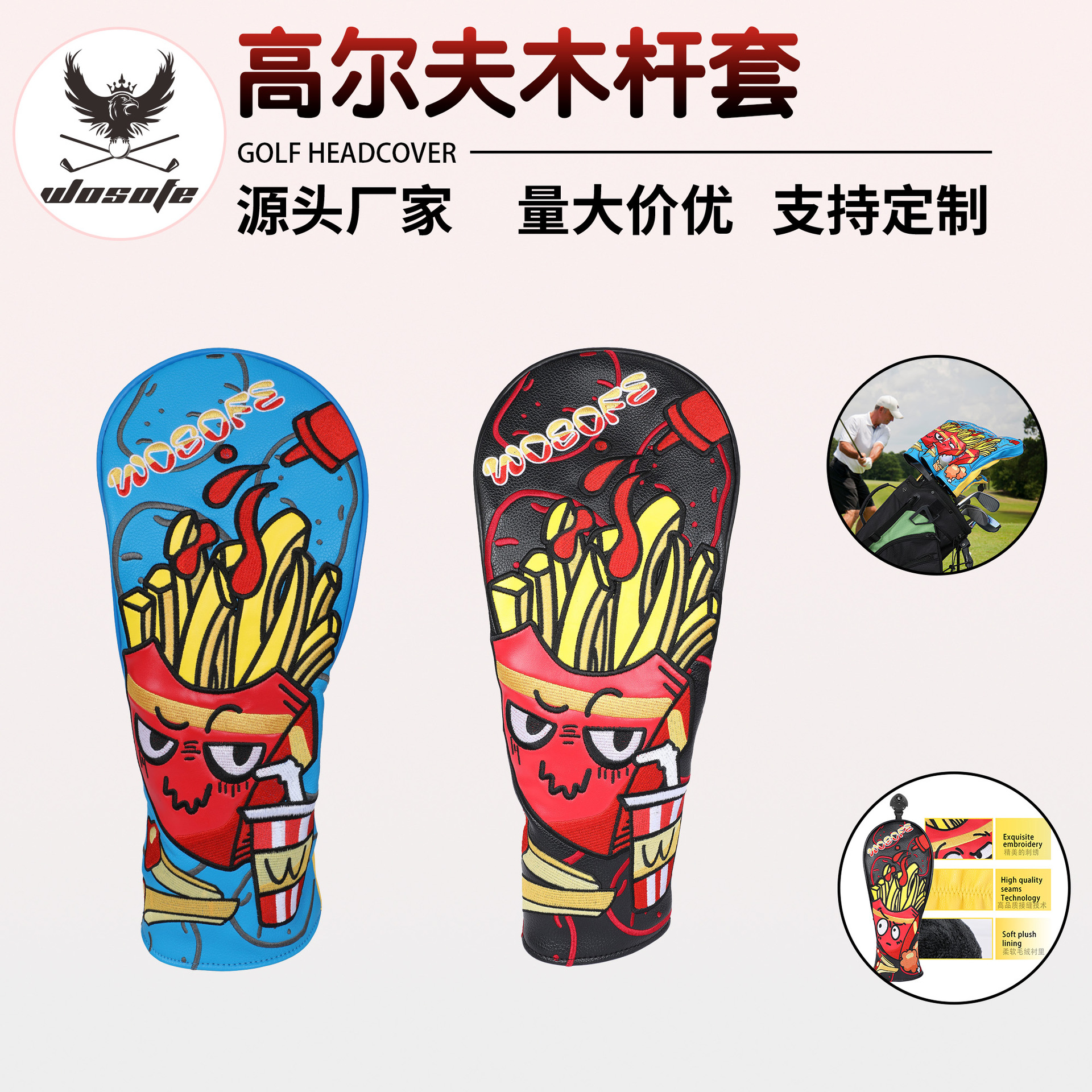 新型ゴルフクラブカバーの高級pu素材の創意ポテトの刺繍が美しい模様が国境を越えてよく売れています。