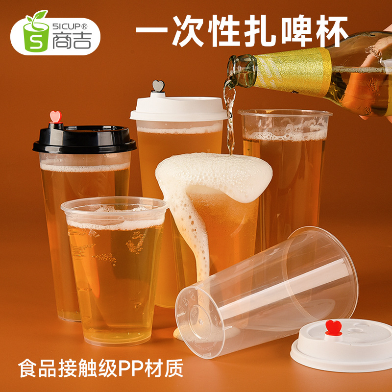 商吉90口径使い捨てビールカッププラスチックカップ蓋付き透明ミルクティーカップ出前包装カップ飲料