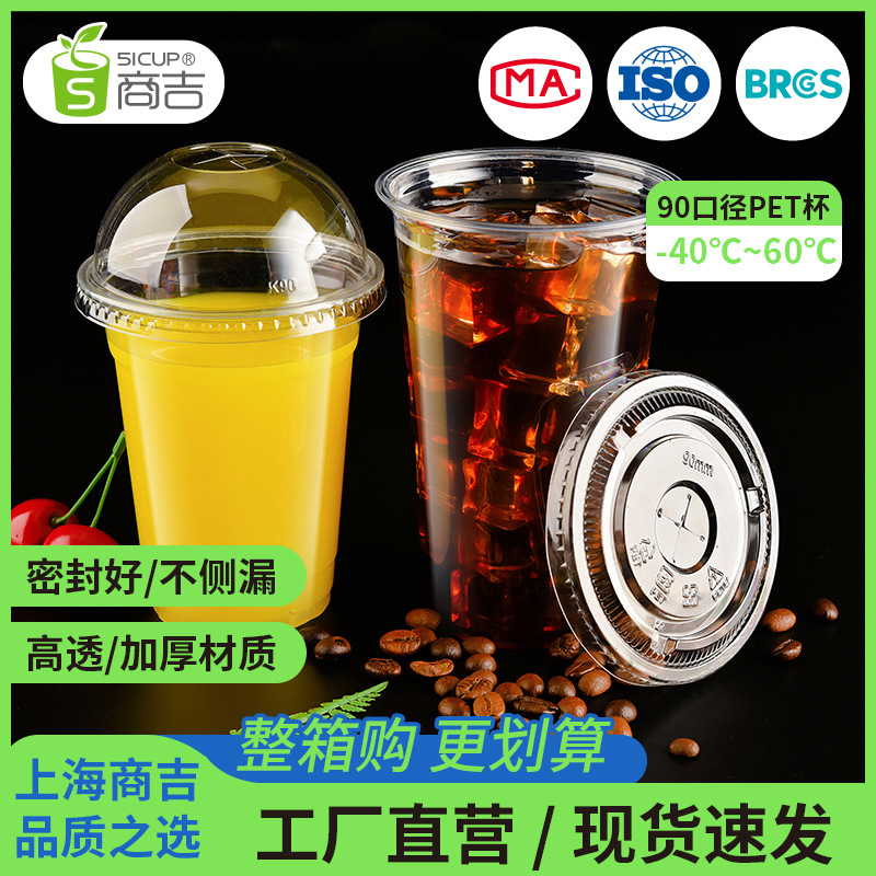 上海商吉90口径高透明petプラスチックカップ使い捨てコップジュースミルクカップ