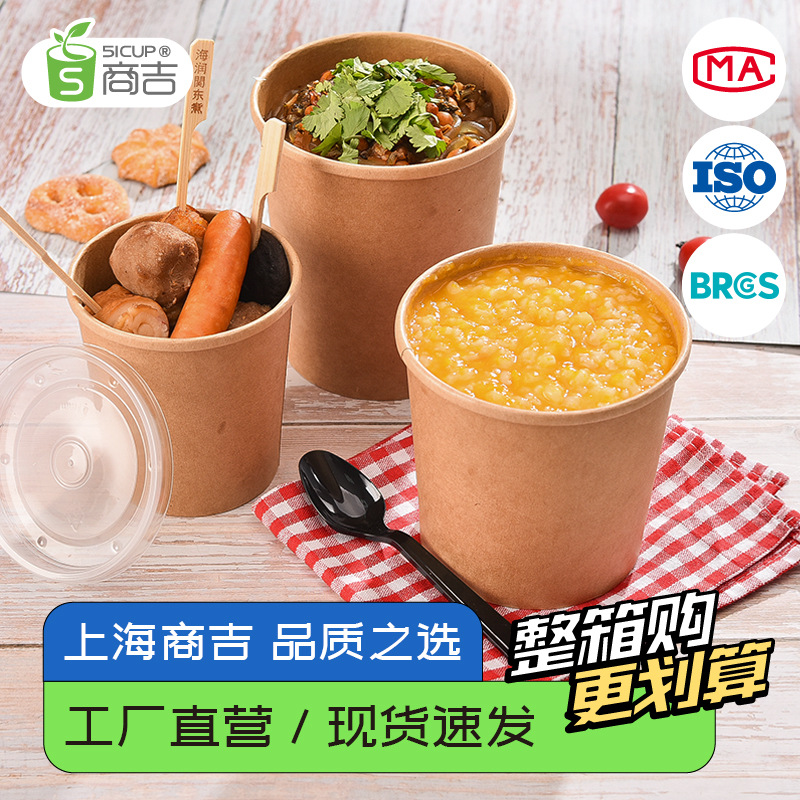 上海商吉使い捨てクラフト紙包装箱紙碗スープ桶業務用お粥桶の出前弁当箱スープ碗蓋付き