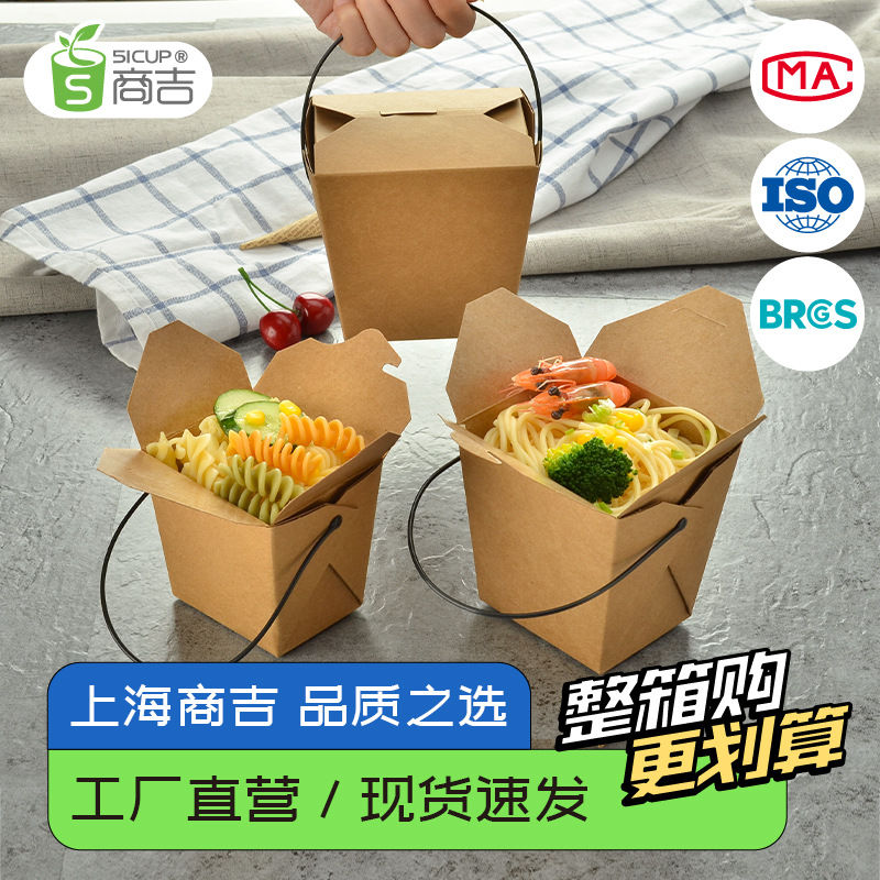 上海商吉クラフト紙創意手提げ弁当箱使い捨てファストフード弁当箱