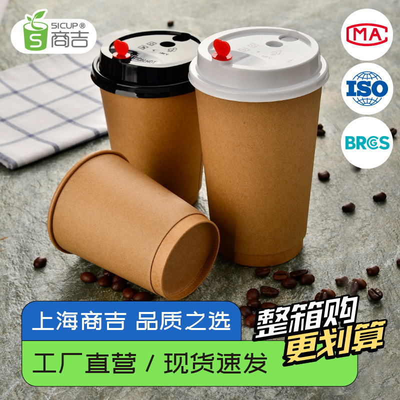 上海商吉二重コーヒーカップ包装紙コップ使い捨てカップ外にミルクカップを持っています。
