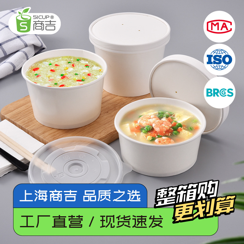 上海商吉白色厚手紙スープ碗使い捨て食器ファーストフード包装箱円形紙碗蓋付き卸売り
