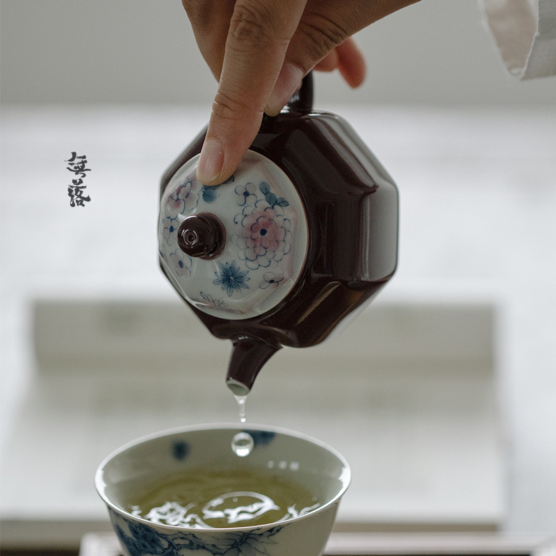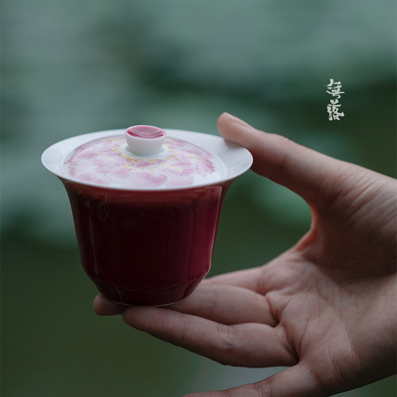 無落紅手描き蓋碗釉薬下粉彩塘韻泡茶碗茶室文人茶空間手掴み碗家