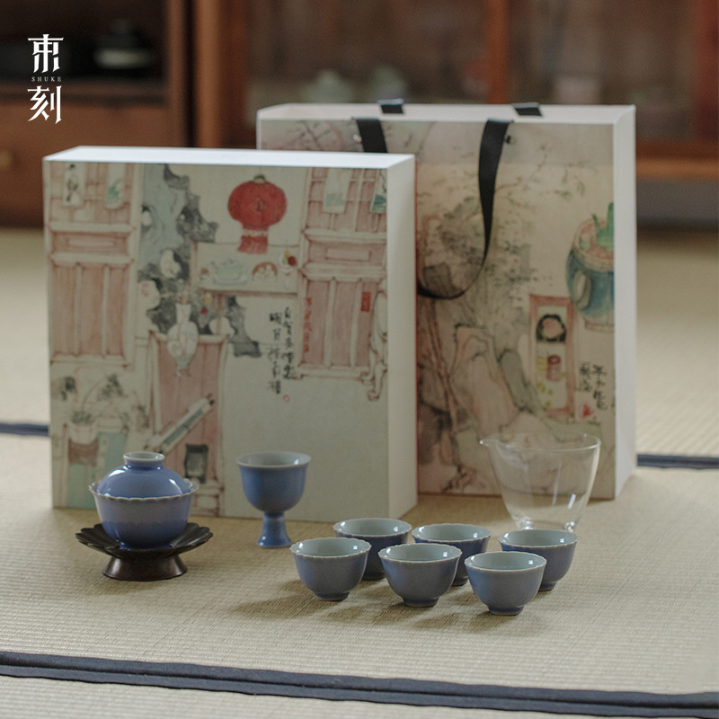 無落景徳鎮精工手描き秋実木槻紫執夢蓋碗工夫茶器セットセット二才蓋碗