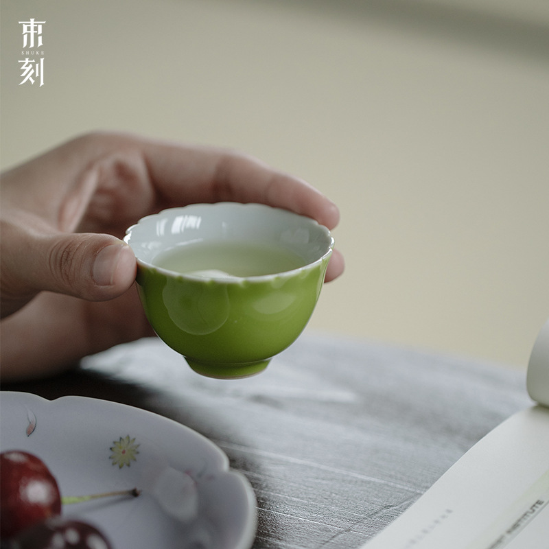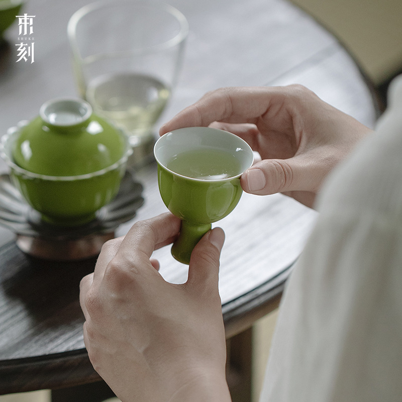 束刻セット家庭用日本式リンゴ緑釉薬蓋碗茶杯主人杯工夫茶具セット