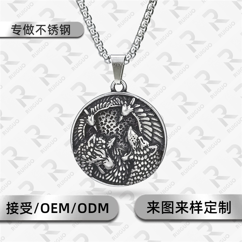 国境を越えたステンレスアクセサリーのレトロな北欧維蒼鷹ハイエナの丸いペンダントの大衆の個性はチタン鋼のネックレスを着ています。