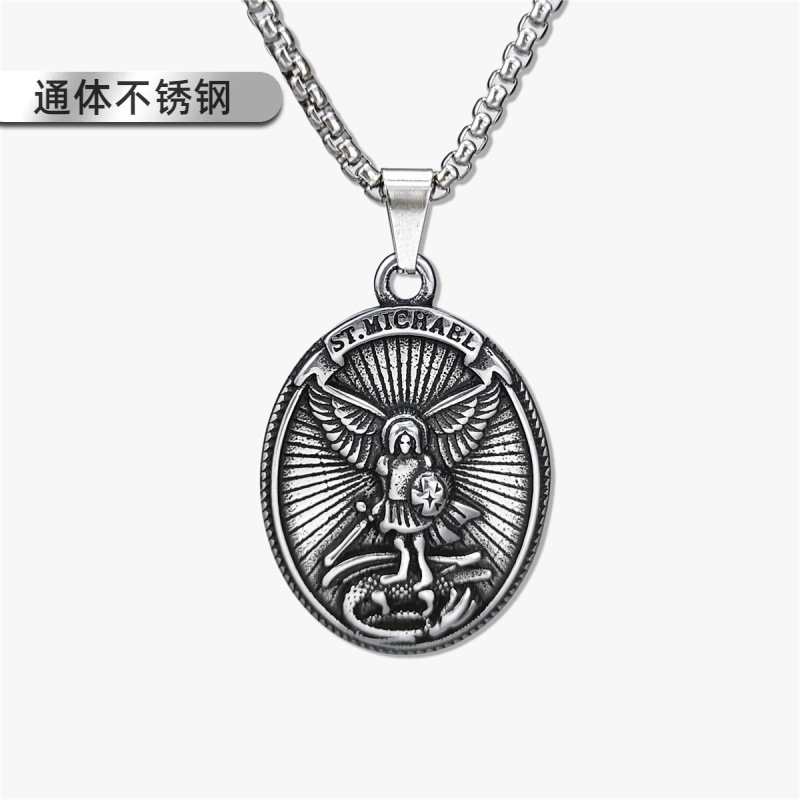 アマゾンの新しいアクセサリーファッションレトロ楕円形盾騎士守護者男性ステンレスネックレス