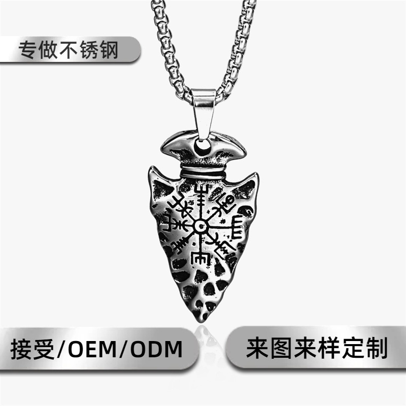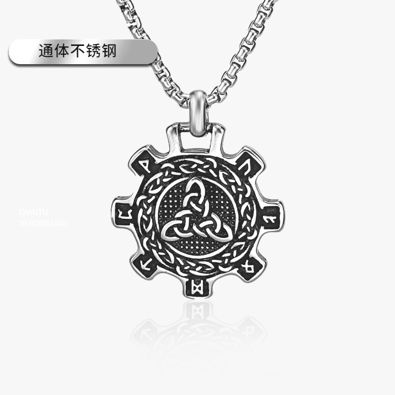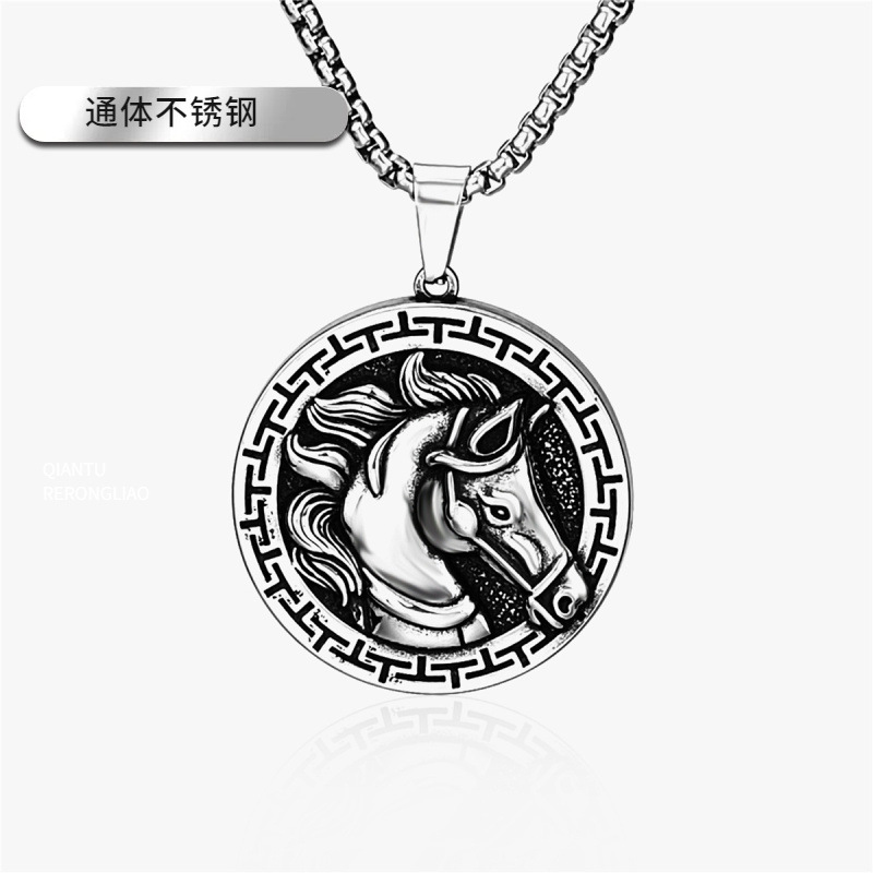 2023クロスボーダー欧米ペンダントネックレストーテムローマ維京馬頭ステンレス円吊り札現物卸売り
