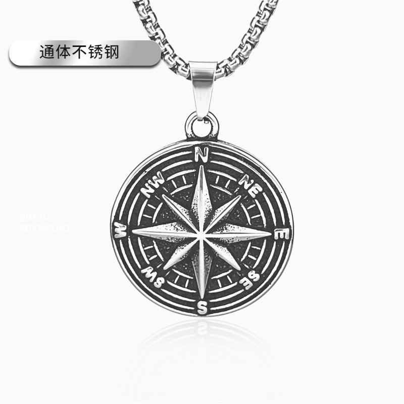 アマゾンバイキングチタン鋼コンパスネックレス男性個性百合シンプル円形ペンダントスポット卸売り