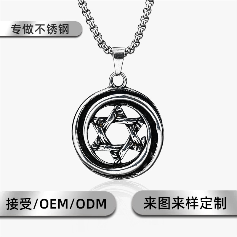 欧米風ステンレス六芒星ペンダントレトロ研磨工芸円形六角星ネックレス現物卸売り