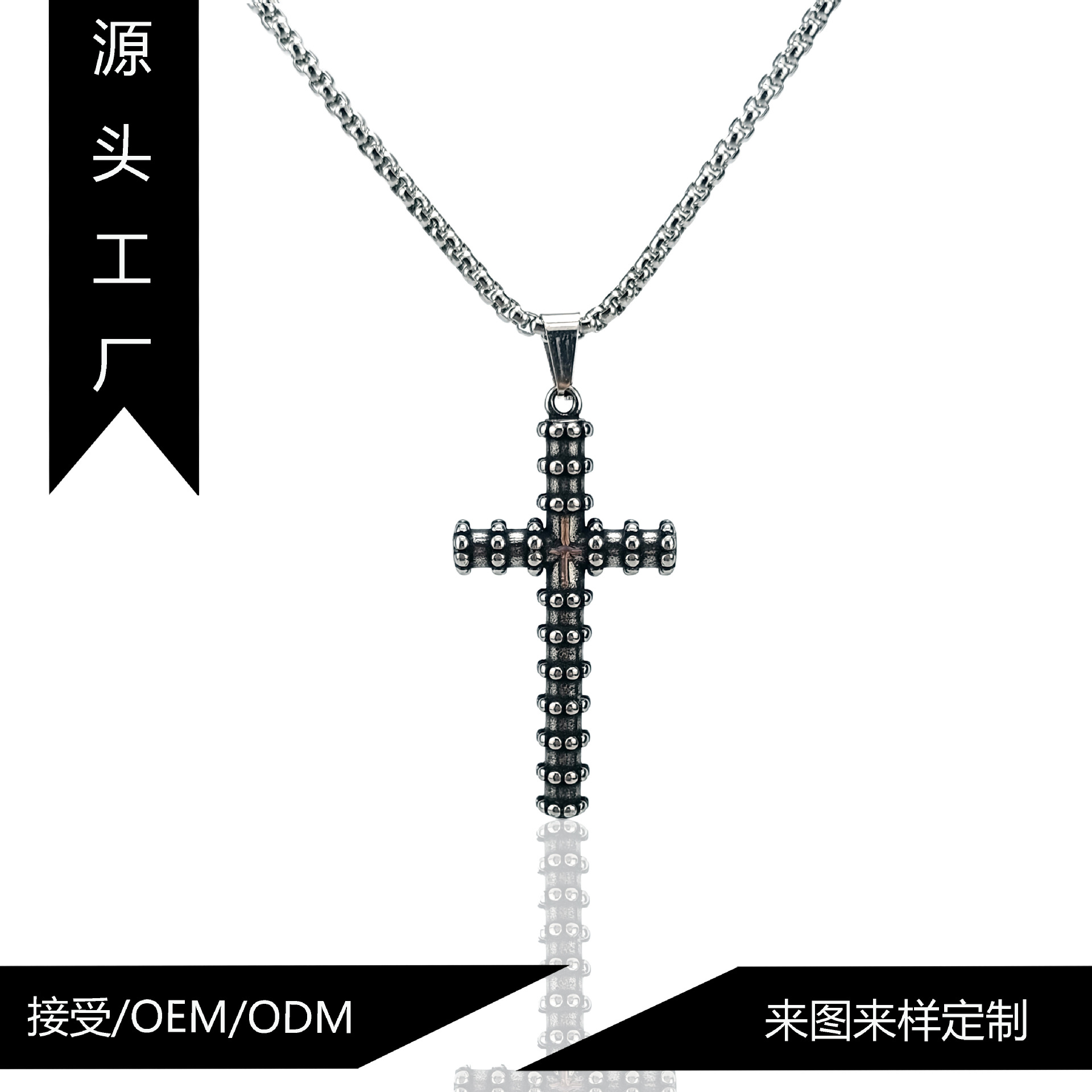 欧米のクロスボーダーのファッションの張暗黒風のクロスのネックレスのペンダントの男性のヒップホップの組み合わせのステンレスの真珠のチェーン