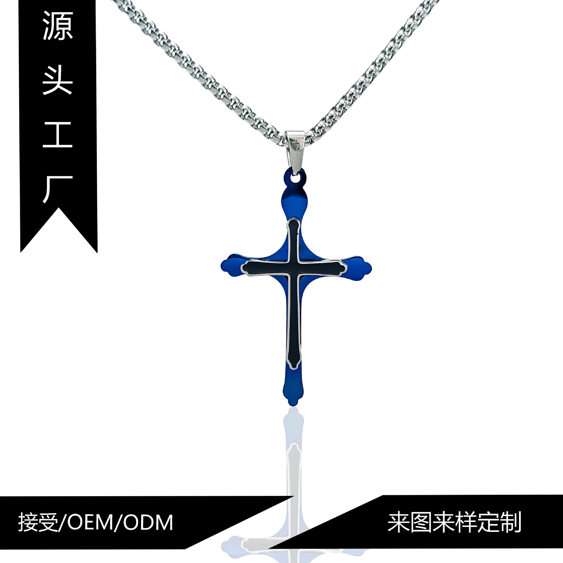 欧米の販売促進クロスボーダー野球クロスネックレス新型ステンレスペンダントファッション男性アクセサリー卸売り