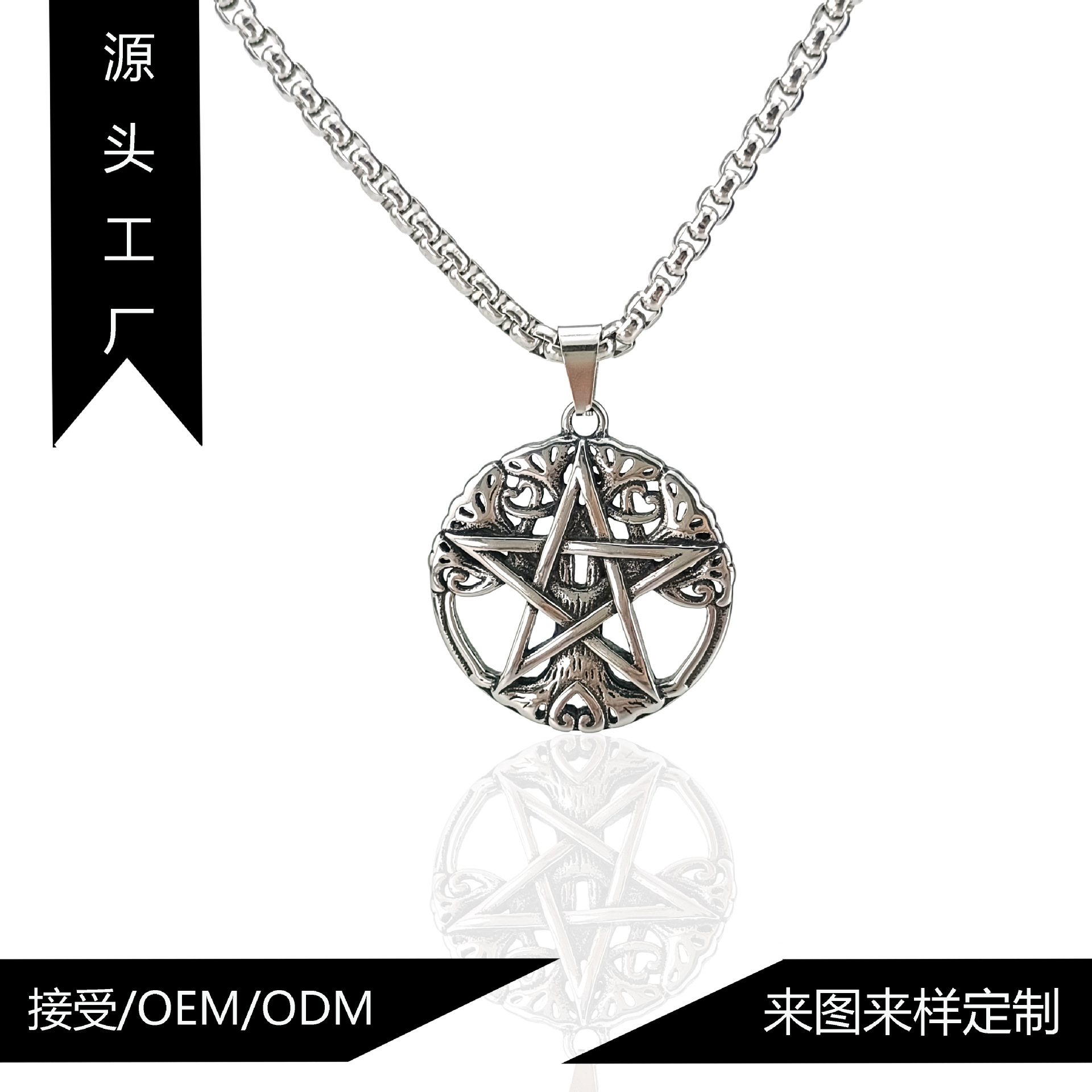 新型外国貿易アクセサリー卸売り欧米個性復古風生命樹五角星男性ステンレスペンダントネックレス