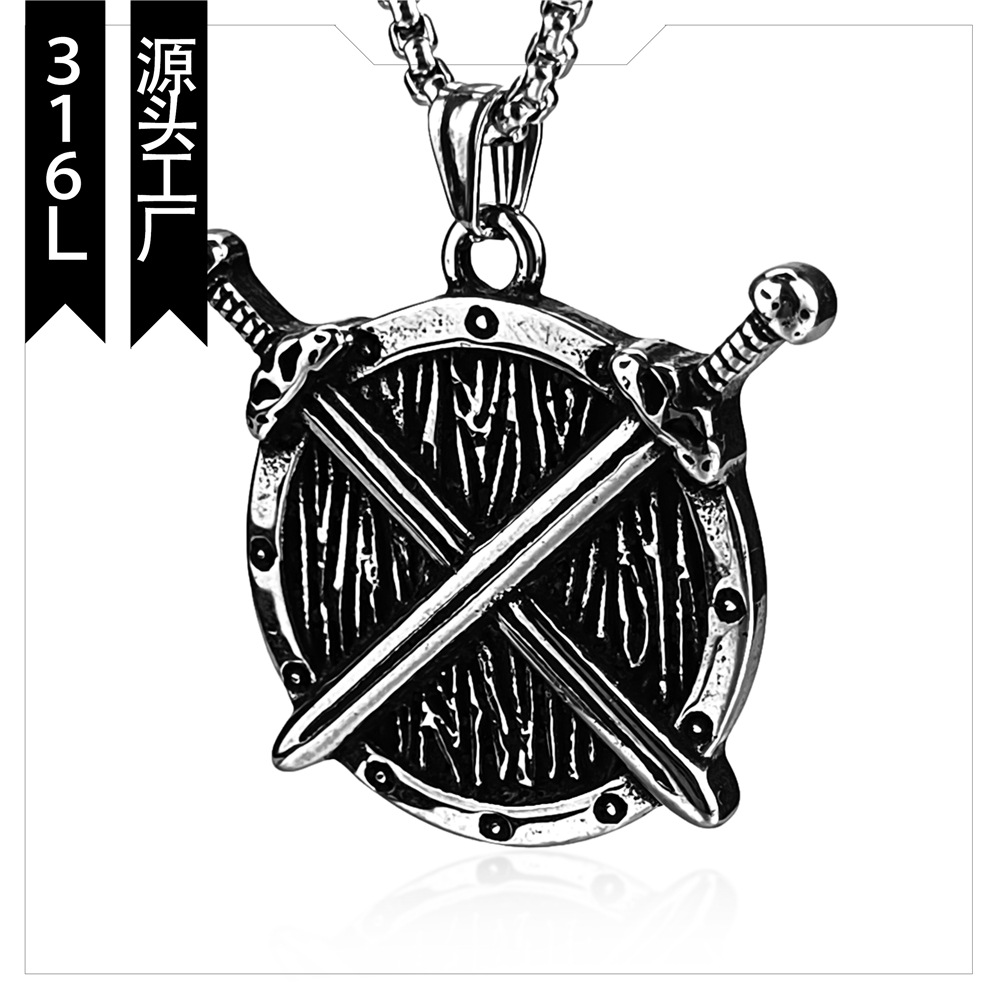 外国貿易欧米維京剣と盾戦争戦士協会チタン鋼ペンダントステンレスネックレス現物卸売り