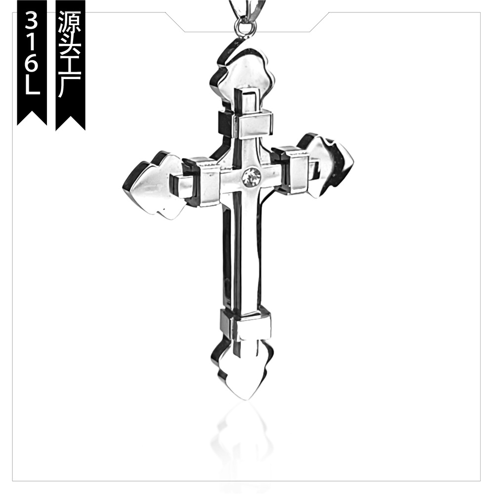 独立駅アマゾンに二重十字架チタン鋼ペンダント男性ステンレスネックレス卸売り