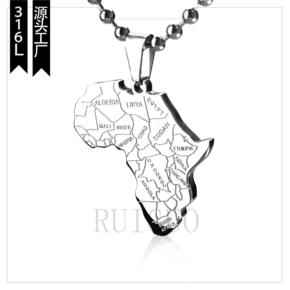 夏のアマゾン刻印地図メンズペンダント熱帯雨林大陸ステンレスネックレス卸売