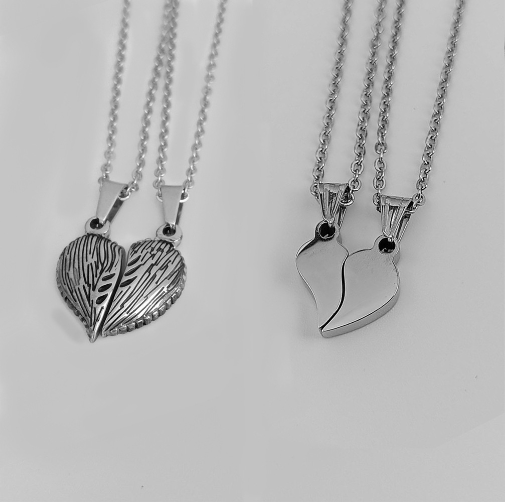 カスタムinsパズル愛韓国版カップルネックレスハート型ペンダント天使の翼ステンレス愛女子アイテム