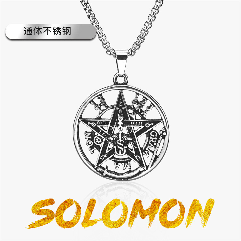 ステンレスhiphopヒップホップ五芒星ソロモンカバラお守り男性女性ペンダントネックレス起爆
