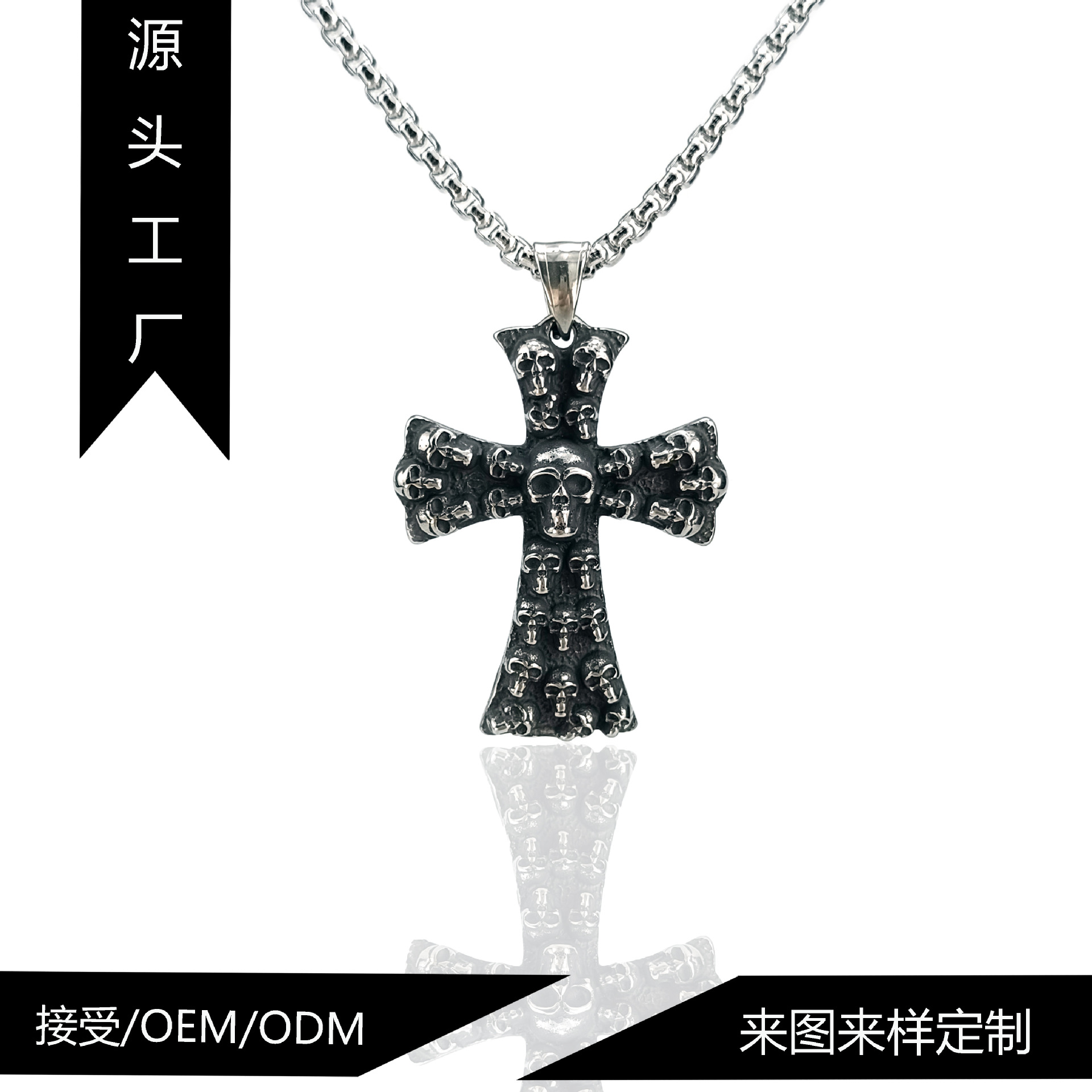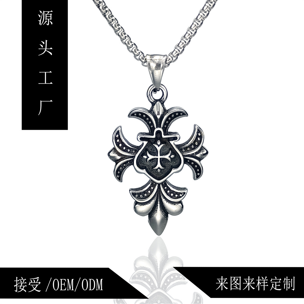 国境を越えて起爆した欧米のクロスネックレスの潮流男性ステンレスの個性は古いデザイン感のネックレスの卸売りをします。