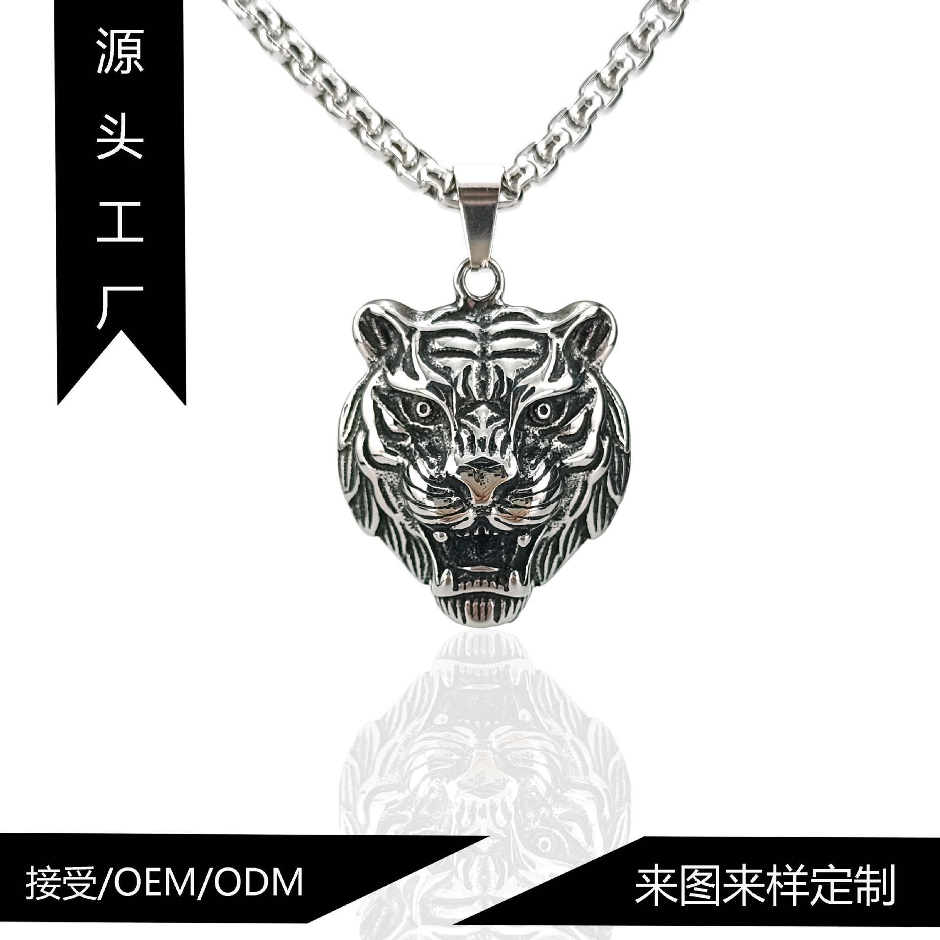 新商品タイガーネックレス男性生肖タイガーペンダントヒップホップ復古風ステンレス真珠チェーンアクセサリー